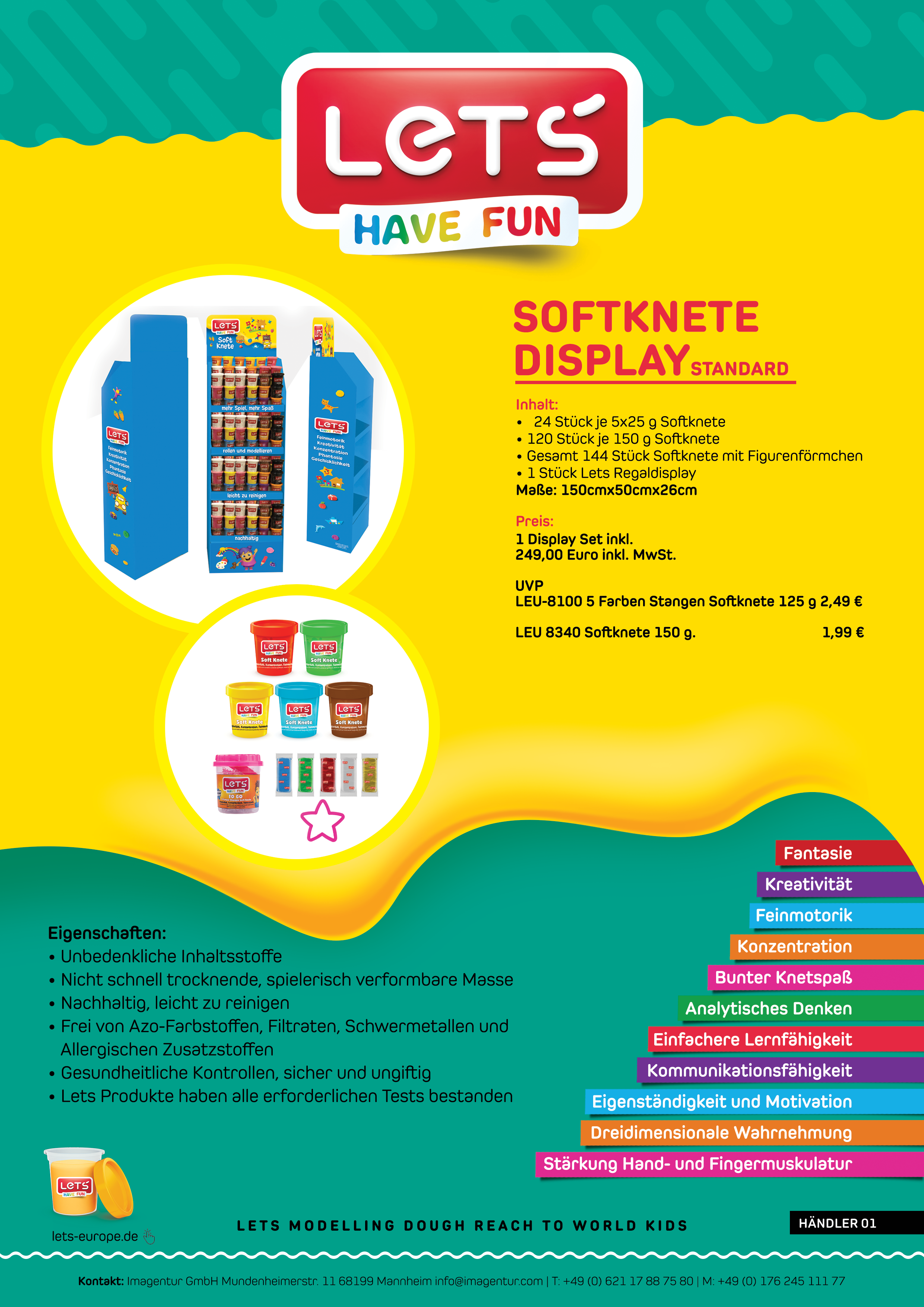 24 Stück Finger Softknete TO Go 5 Farbig*